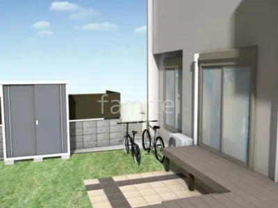 駐車スペースの洗出しと石材を撤去し、土間コンクリート仕上げと大判タイル 東洋石創 リジッドを貼り仕上げ、耐久性が向上し、モダンな印象に仕上げました。 また、自転車置き場にはサイクルポート LIXIL ネスカFミニを設置し、雨や日差しから自転車を守ります。 お庭には片開き門扉 LIXIL AB YR3型を採用し、防犯性がアップしました。